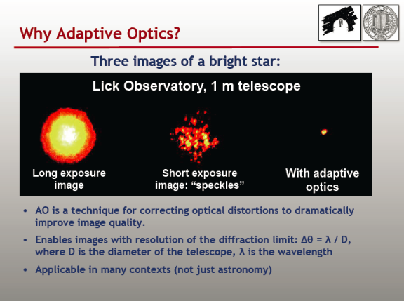 报告中,Claire Max教授首先介绍了钠导星的军事解密历史渊源以及AO在天文观测的作用,总结了目前AO的技术发展方向,着重强调了由于激光导星自适应光学(激光AO)的研究和应用,使得目前地基天文望远镜的分辨率比太空望远镜Hubble的分辨率还要高。