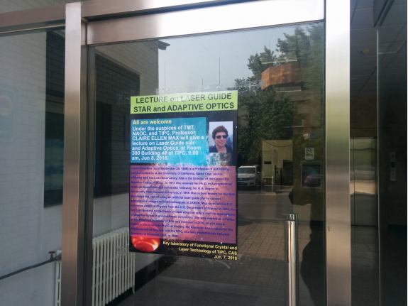 应三十米望远镜(TMT)国际天文台、中国科学院国家天文台、以及中国科学院理化技术研究所功能晶体与激光技术重点实验室邀请和安排,美国加利福尼大学教授、LICK天文台台长、天文学家和天文物理学家Claire Ellen Max教授于6月8日上午来理化所交流访问,并作了题为Astronomy with laser guide star and adaptive optics的报告。科学院功能晶体与激光技术重点实验室科技人员作了题为Sodium Beacon Laser System for TMT的报告。